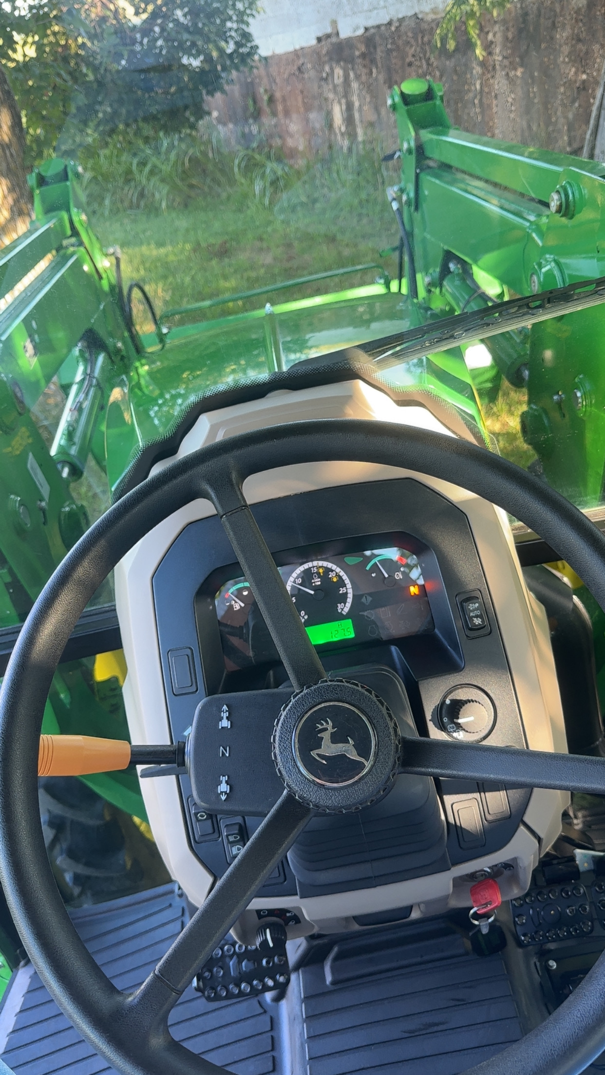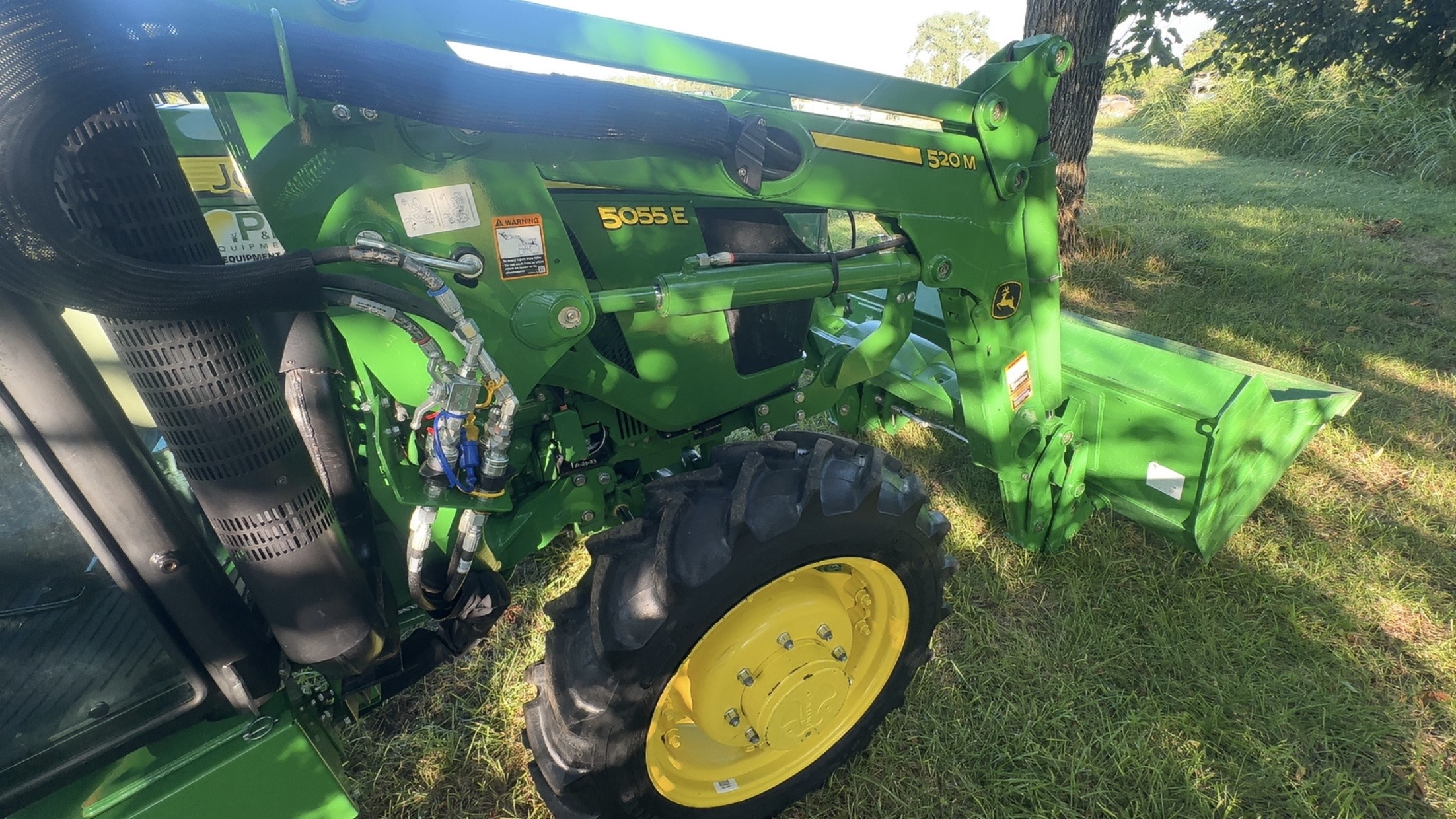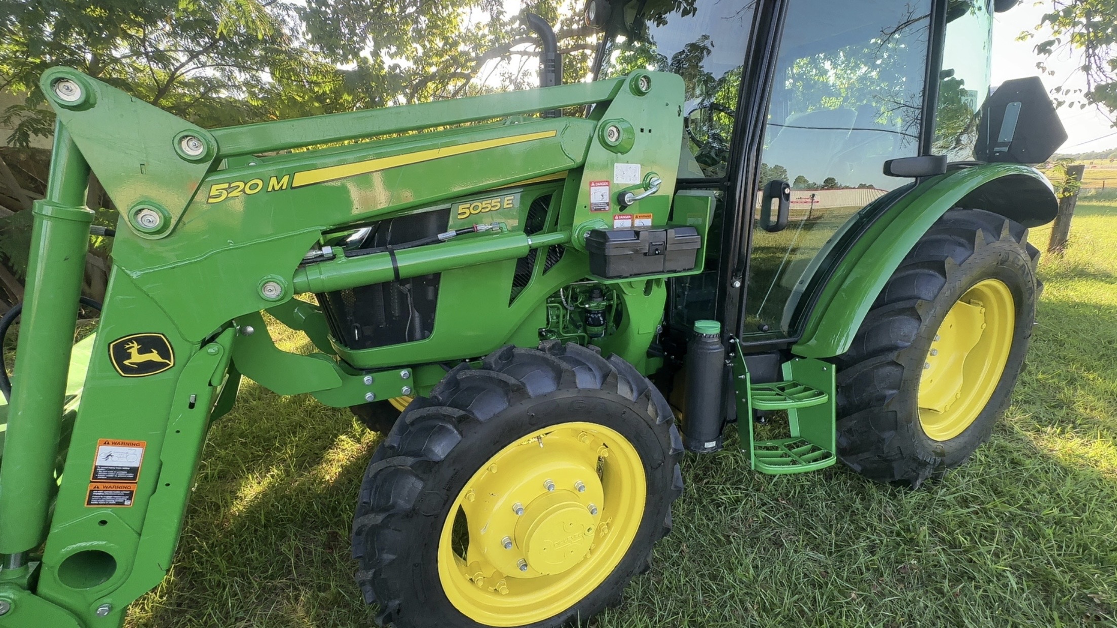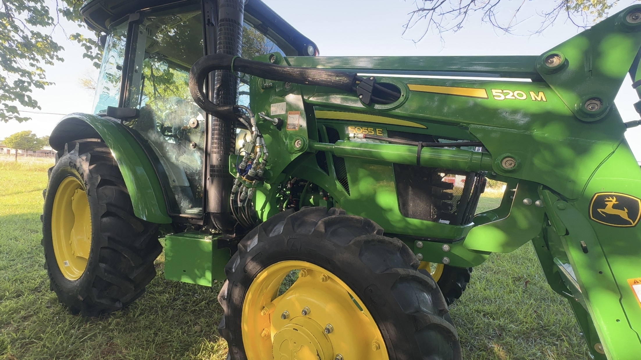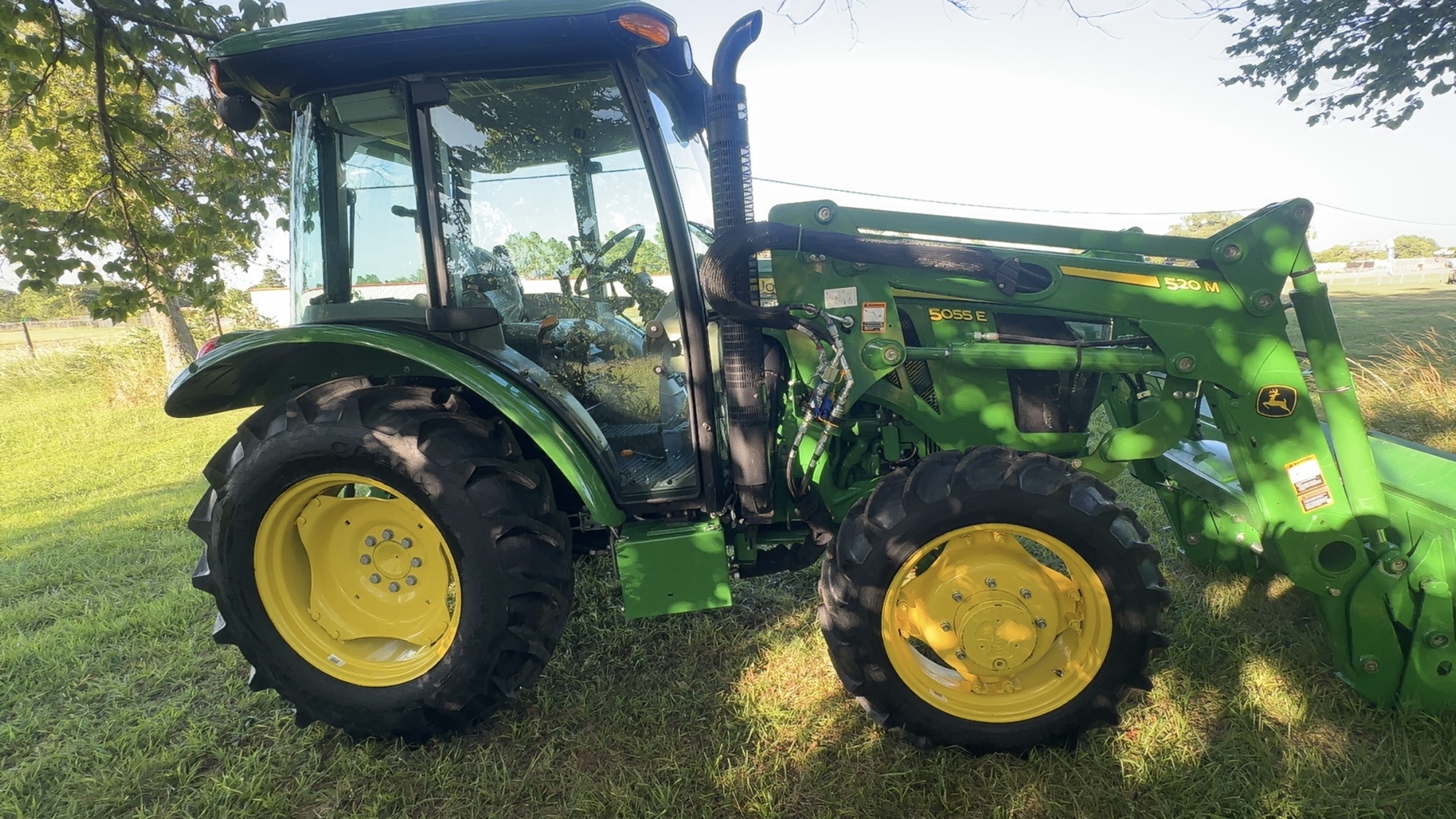 2023 John Deere 5055E 4-wheel drive cab tractor with the upgraded 520M loader. Tractor is in like brand new condition with only 127 original hours. It’s still under the factory warranty. It’s also very easy to operate with the shuttle shift on the column—anyone can run this tractor. Also has an air-conditioned cab, which is a must for these hot summer days. Included is a front bucket and a hay spike. Tractor was just fully serviced through P&K Equipment and is ready to be put to work. Located in Shawnee, Oklahoma. Message me for any other info needed.