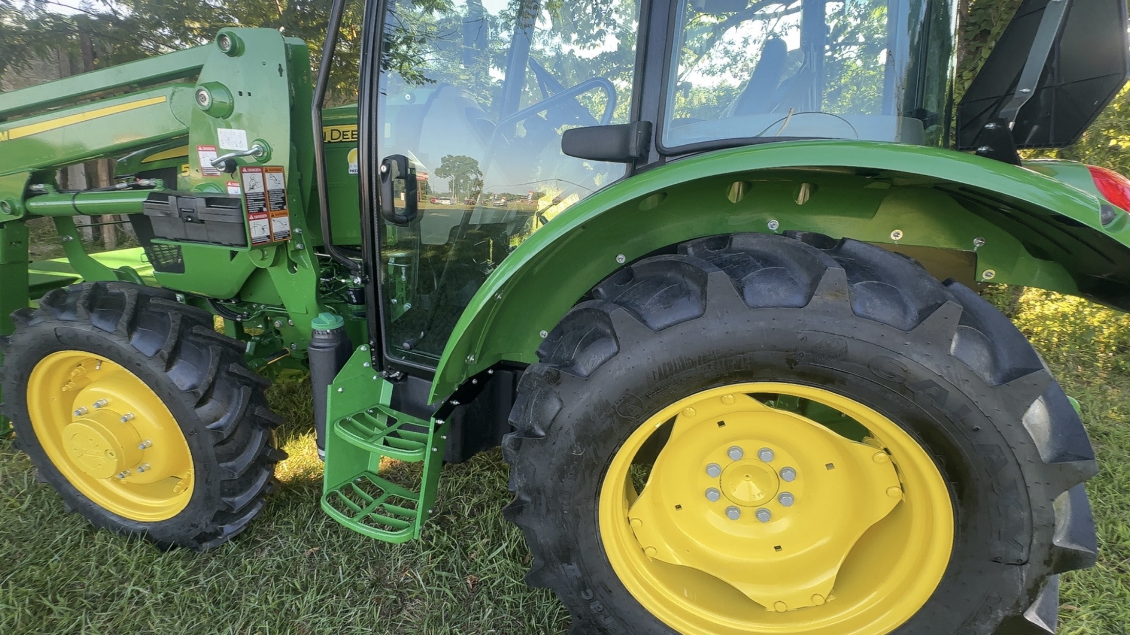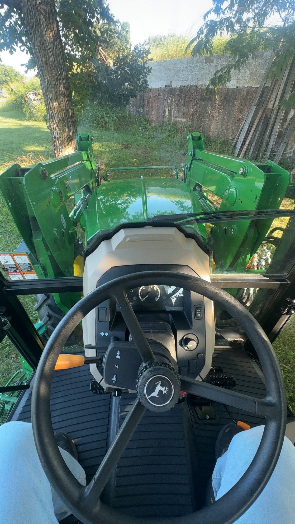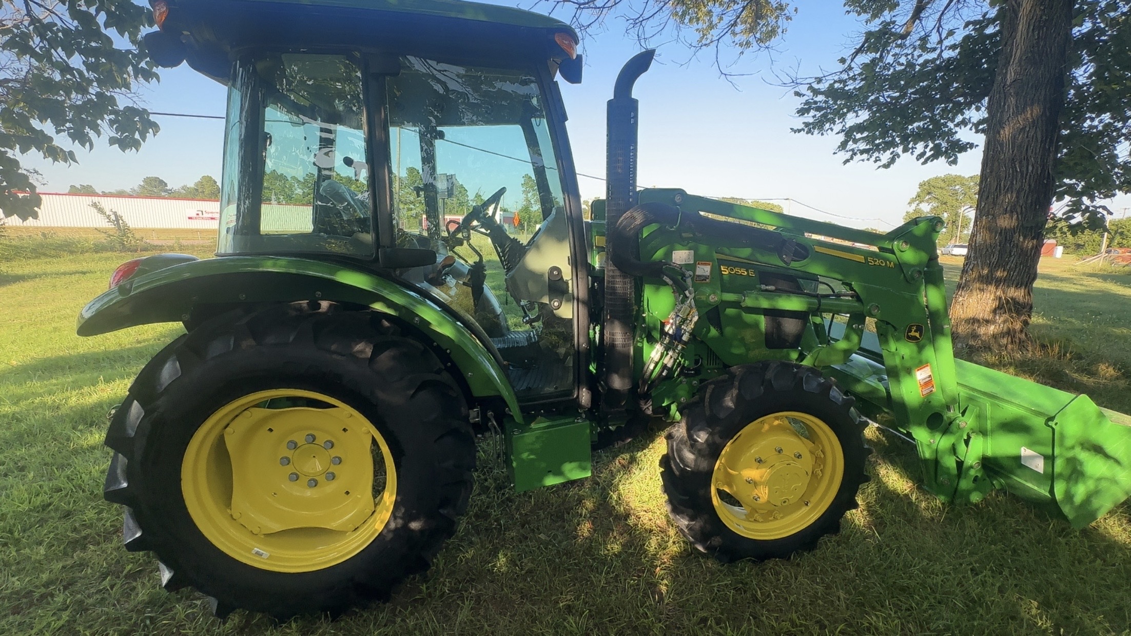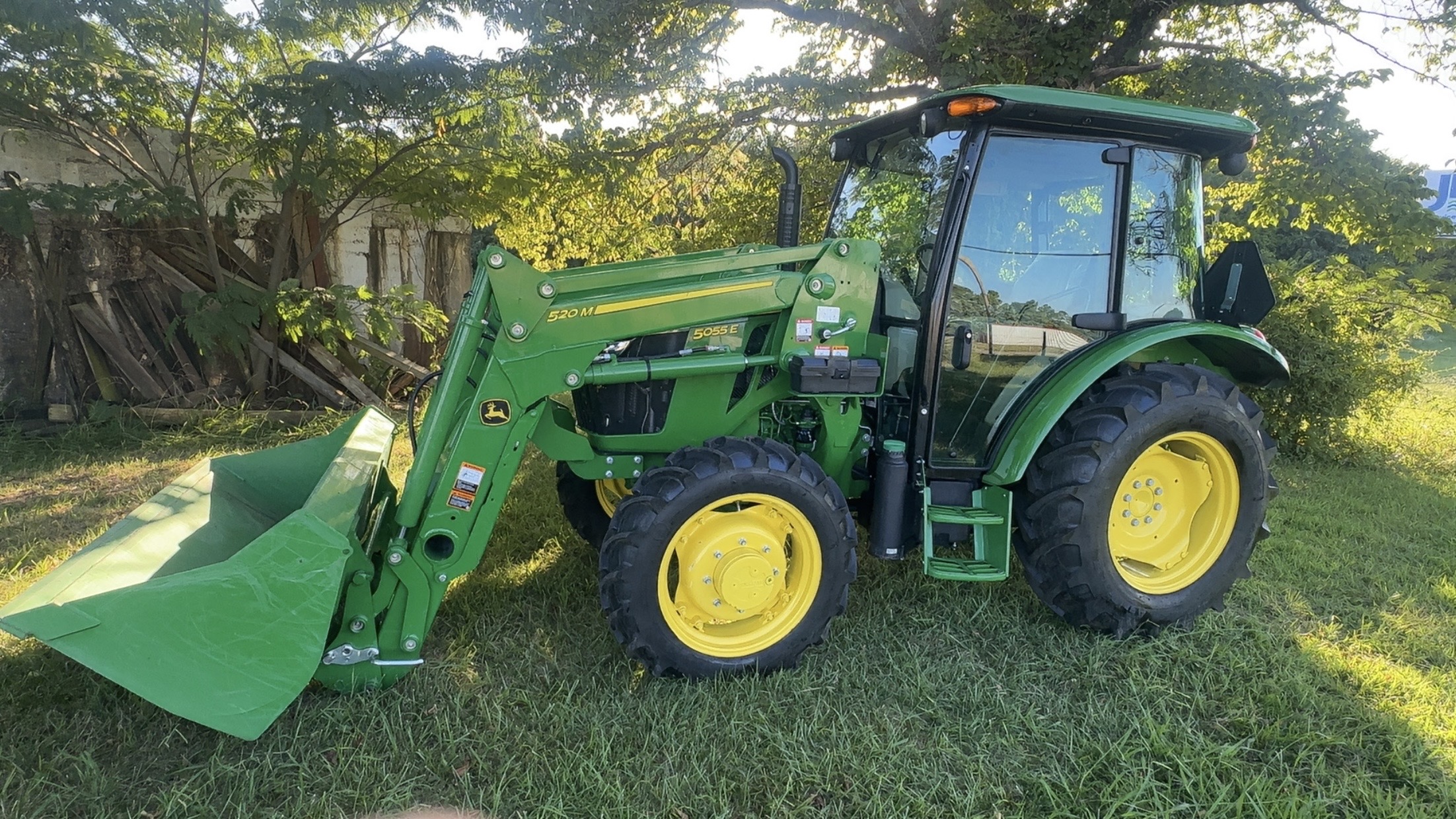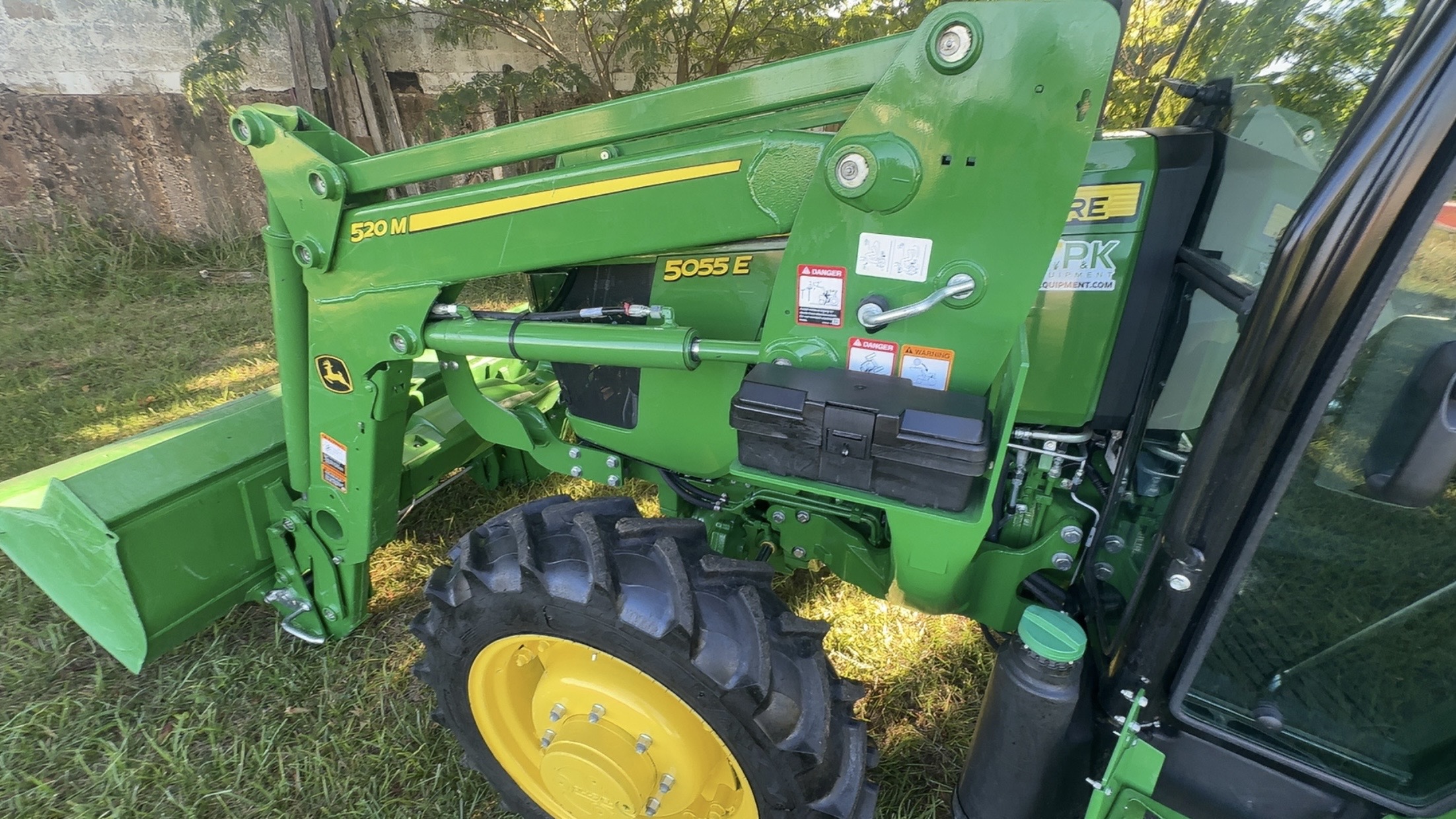 2023 John Deere 5055E 4-wheel drive cab tractor with the upgraded 520M loader. Tractor is in like brand new condition with only 127 original hours. It’s still under the factory warranty. It’s also very easy to operate with the shuttle shift on the column—anyone can run this tractor. Also has an air-conditioned cab, which is a must for these hot summer days. Included is a front bucket and a hay spike. Tractor was just fully serviced through P&K Equipment and is ready to be put to work. Located in Shawnee, Oklahoma. Message me for any other info needed.