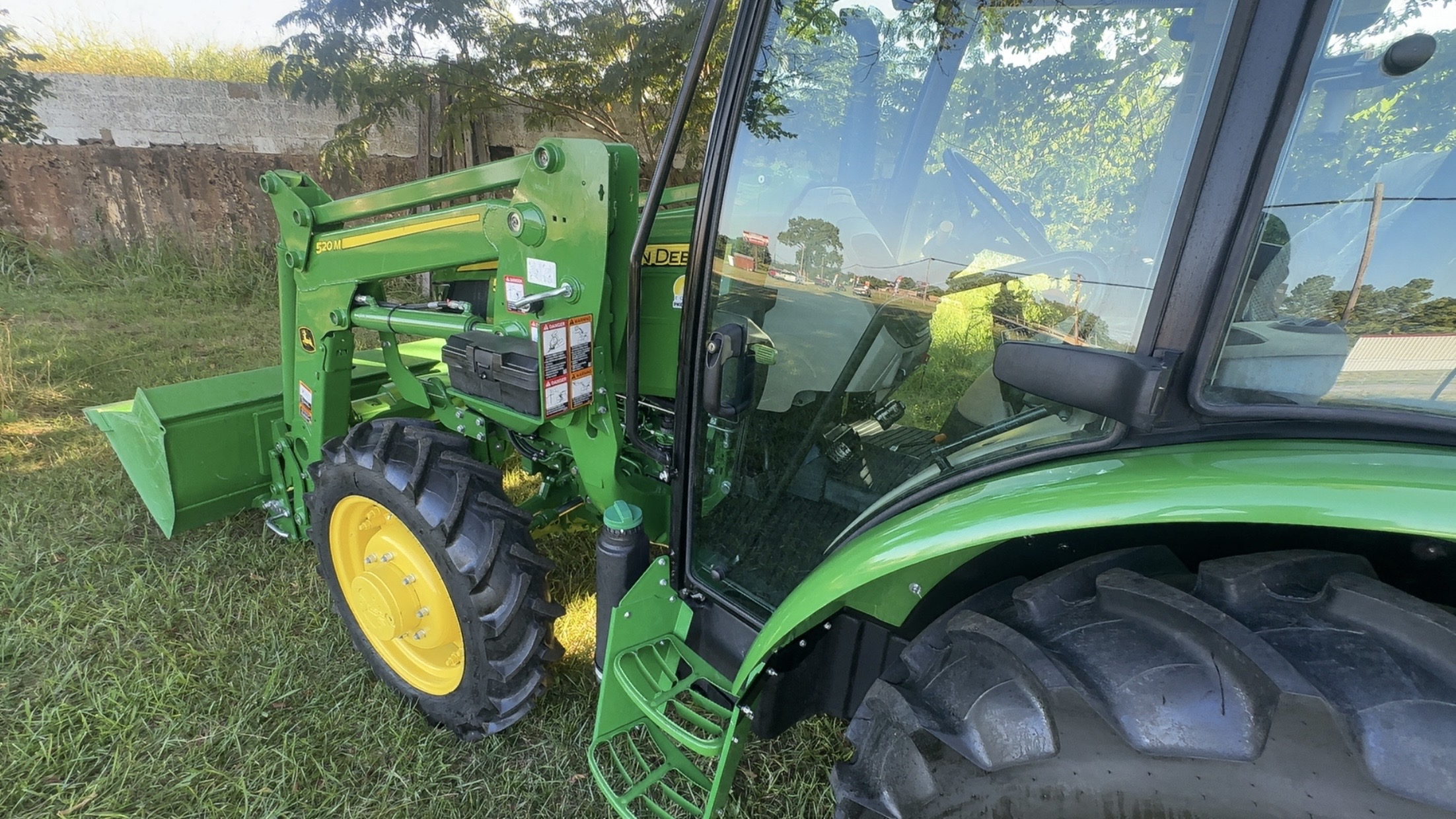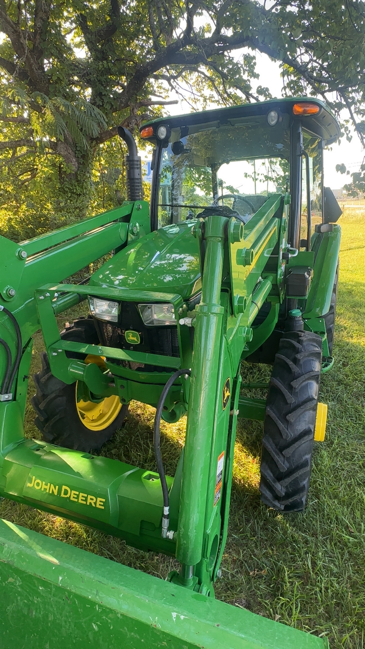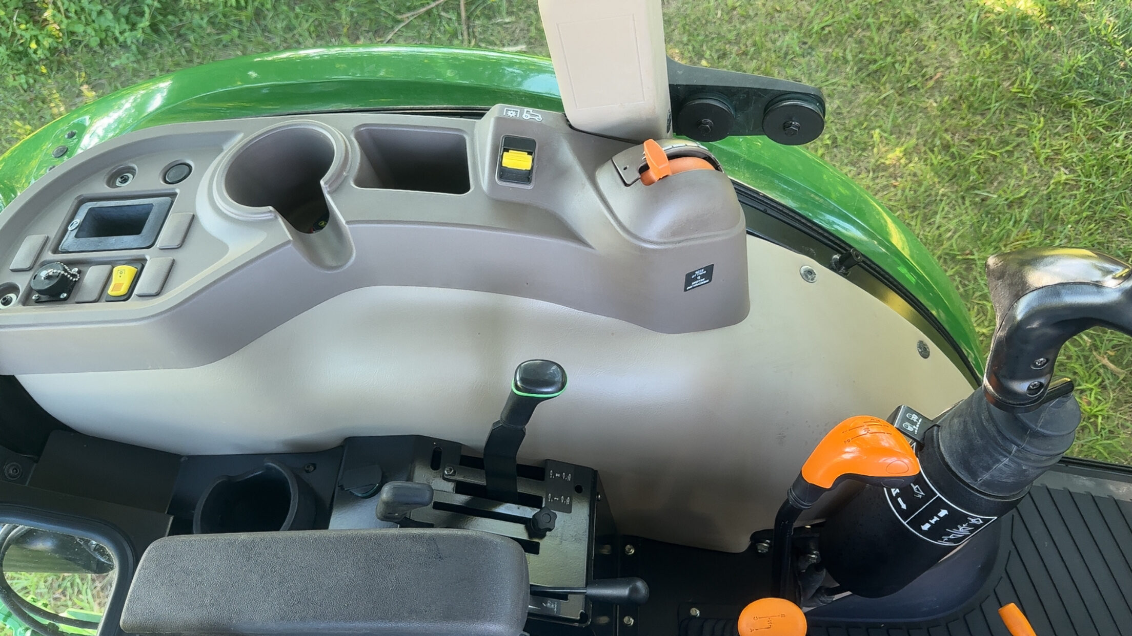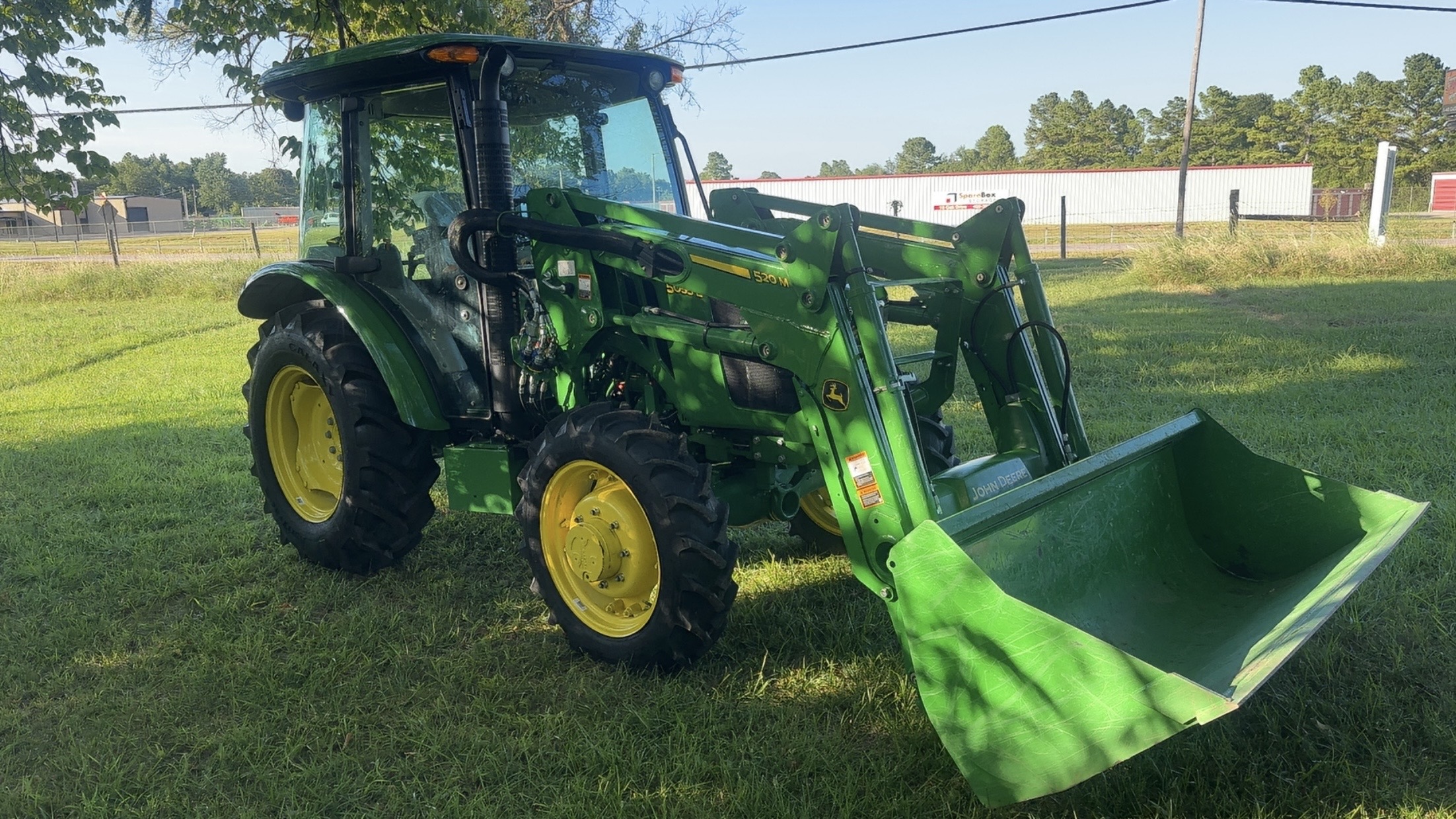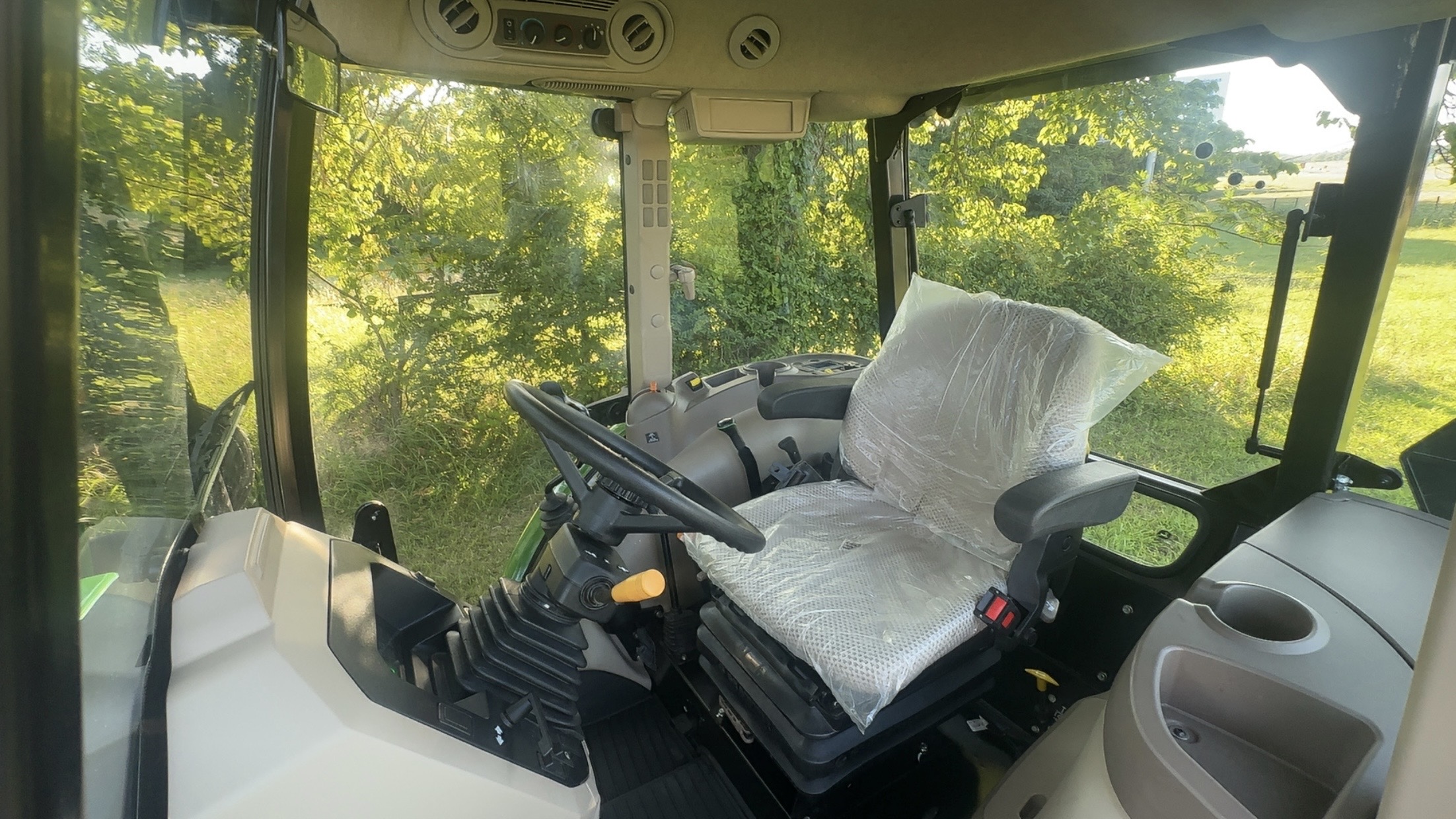2023 John Deere 5055E 4-wheel drive cab tractor with the upgraded 520M loader. Tractor is in like brand new condition with only 127 original hours. It’s still under the factory warranty. It’s also very easy to operate with the shuttle shift on the column—anyone can run this tractor. Also has an air-conditioned cab, which is a must for these hot summer days. Included is a front bucket and a hay spike. Tractor was just fully serviced through P&K Equipment and is ready to be put to work. Located in Shawnee, Oklahoma. Message me for any other info needed.